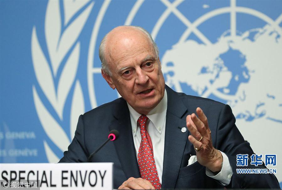 當(dāng)?shù)貢r(shí)間2018年12月18日,瑞士日內(nèi)瓦,聯(lián)合國(guó)秘書(shū)長(zhǎng)敘利亞問(wèn)題特使德米斯圖拉參加討論組建敘利亞憲法委員會(huì)問(wèn)題的會(huì)議并出席新聞發(fā)布會(huì)。(圖片來(lái)源:視覺(jué)中國(guó))