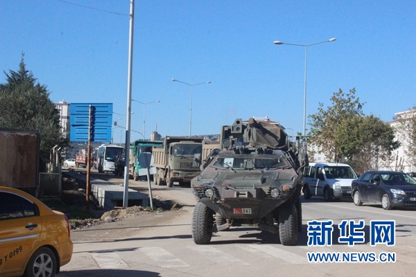 這是12月24日在土耳其基利斯省拍攝的軍事車輛。? 新華社/伊赫拉斯新聞社