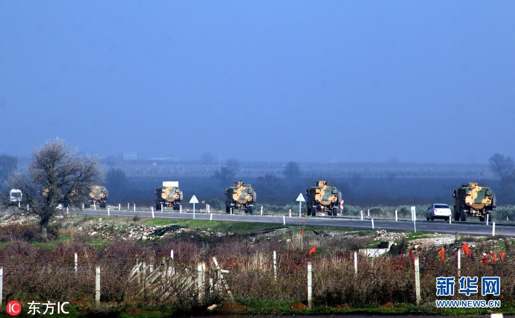 當(dāng)?shù)貢r(shí)間2018年12月24日,土耳其哈塔伊,土耳其裝甲車被派往敘利亞邊境的基利斯地區(qū),增援邊境部隊(duì)。(圖片來(lái)源:東方IC)