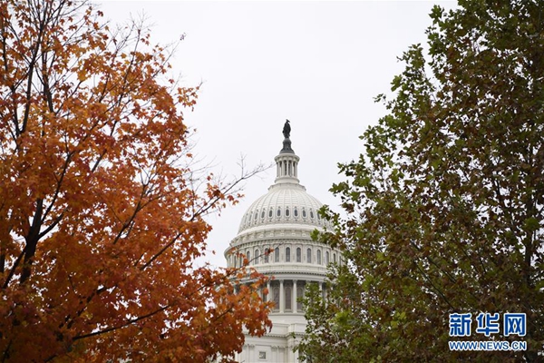 這張2018年11月6日拍攝的資料照片顯示,在美國(guó)華盛頓,國(guó)會(huì)大廈掩映在樹(shù)木之間。 新華社記者 劉杰 攝