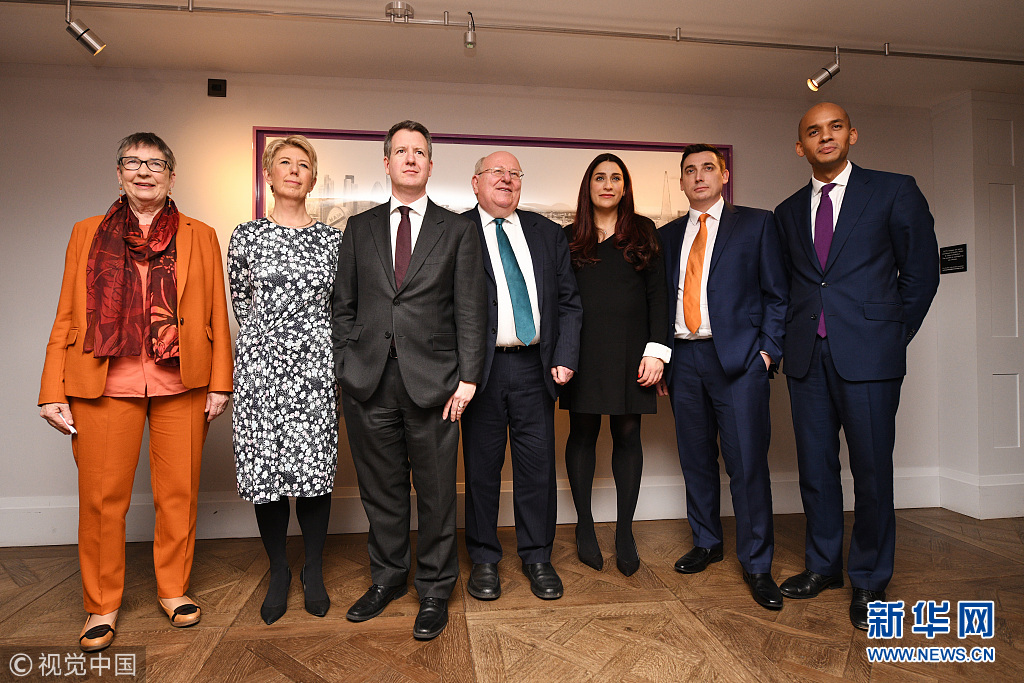 當地時間2019年2月18日,英國倫敦,英國反對黨工黨的7名議員宣布從工黨辭職,他們將組成一個新的國會議員獨立團體,以抗議該黨對英國“