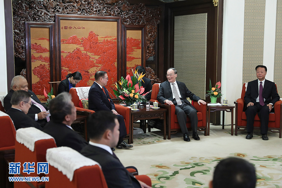 3月19日,國家副主席王岐山在北京中南海會見由外長洛欽、執(zhí)行部長梅迪亞爾德亞、財長多明格斯等組成的菲律賓政府代表團(tuán)。 新華社記者 丁海濤 攝