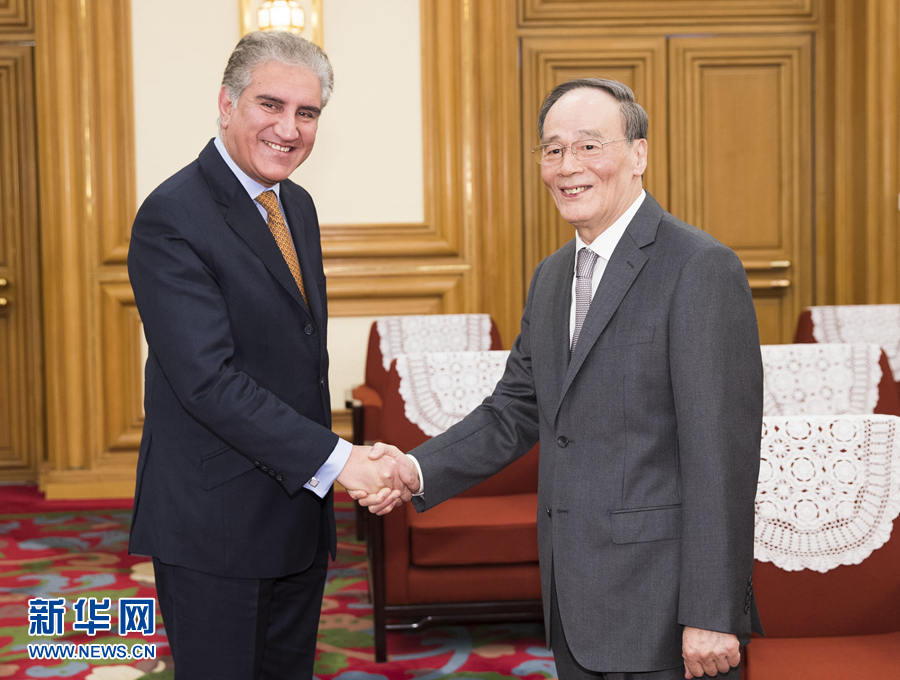 會見庫雷希時,王岐山表示,中巴是好鄰居。中巴友誼歷經(jīng)時間和國際風(fēng)云變幻考驗,得到兩國人民真心擁護(hù)。近年來,兩國領(lǐng)導(dǎo)人往來頻繁,全天候戰(zhàn)略合作伙伴關(guān)系不斷取得新進(jìn)展。在相互理解、相互信任基礎(chǔ)上建設(shè)睦鄰友好關(guān)系,營造良好周邊環(huán)境,是一國實(shí)現(xiàn)和平發(fā)展的重要條件。中方支持巴方抓住機(jī)遇、應(yīng)對挑戰(zhàn),妥善處理鄰國關(guān)系,實(shí)現(xiàn)巴基斯坦穩(wěn)定發(fā)展。希望兩國繼續(xù)深化全方位合作,推動中巴經(jīng)濟(jì)走廊等“一帶一路”重要先行先試項目取得更多成果。