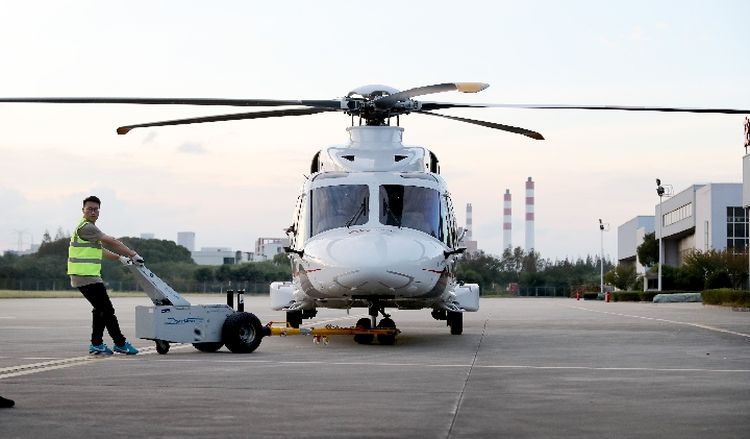 作為首屆中國國際進(jìn)口博覽會上的展品,意大利萊奧納多直升機公司AW189直升機入駐智能及高端裝備展區(qū)。(新華社記者方喆攝)