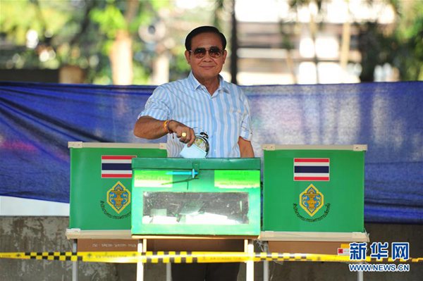 泰國總理巴育8時(shí)左右前往曼谷的一處投票站,排隊(duì)等候投票。他對媒體說,希望泰國人民參與大選投票,合理行使選舉權(quán),團(tuán)結(jié)一致,共同解決國家所面臨的問題。