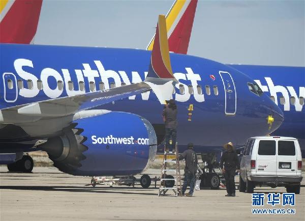 3月27日,在位于美國加利福尼亞州維克托維爾的南加利福尼亞物流機場,工作人員檢查美國西南航空公司的波音737 MAX 8型號飛機。美國波音公司27日發(fā)布公告,介紹了737MAX系列飛機軟件更新情況和對飛行員培訓(xùn)的新內(nèi)容。 新華社發(fā)(趙漢榮攝)