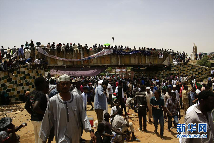 4月12日,人們在蘇丹喀土穆參加反對過渡軍事委員會的集會。新華社發(fā)(穆罕默德·海德爾 攝)