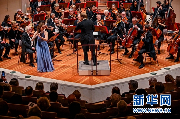 4月13日,尼娜·布赫霍爾策在德國柏林交響樂團(tuán)“明日之星”演奏會(huì)上演奏。 新華社記者 連振 攝
