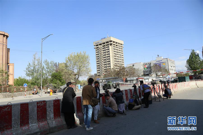 4月20日,在阿富汗首都喀布爾,記者聚集在襲擊現(xiàn)場(chǎng)。新華社發(fā)(拉赫馬特·阿里扎達(dá) 攝)