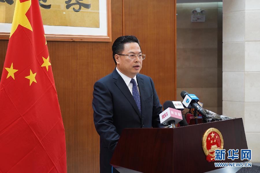 4月24日,在斯里蘭卡首都科倫坡,中國駐斯里蘭卡大使程學(xué)源在記者會上講話。 新華社記者 林昊 攝