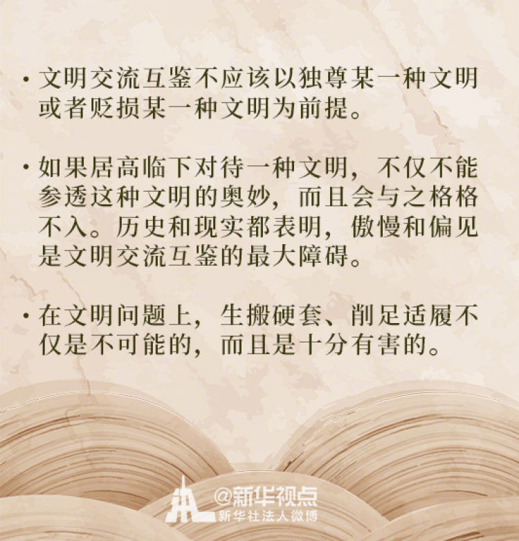 而更深層的原因在于,交流互鑒對(duì)于文明繁榮發(fā)展、人類社會(huì)進(jìn)步具有非同一般的意義,這超出了亞洲的地理范疇。習(xí)近平主席近年來在諸多國(guó)際場(chǎng)合對(duì)此進(jìn)行了深刻闡釋: