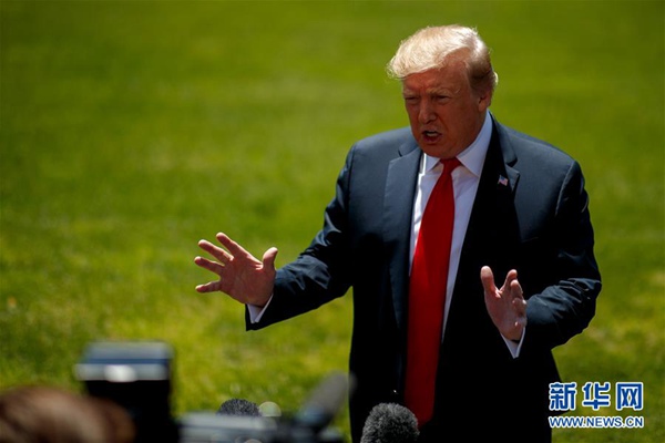 5月24日,美國總統(tǒng)特朗普在華盛頓白宮對媒體講話。美國總統(tǒng)特朗普24日說,美國將向中東增兵約1500人,主要承擔“防御任務(wù)”。新華社發(fā)(沈霆 攝)