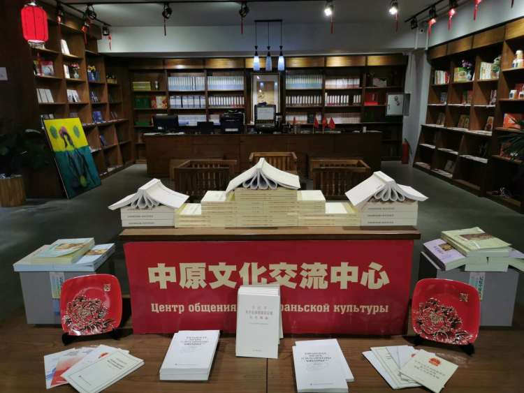 比什凱克市中心的新華書店里,中文書籍?dāng)[放在醒目位置。(新華社記者 高潔 攝)