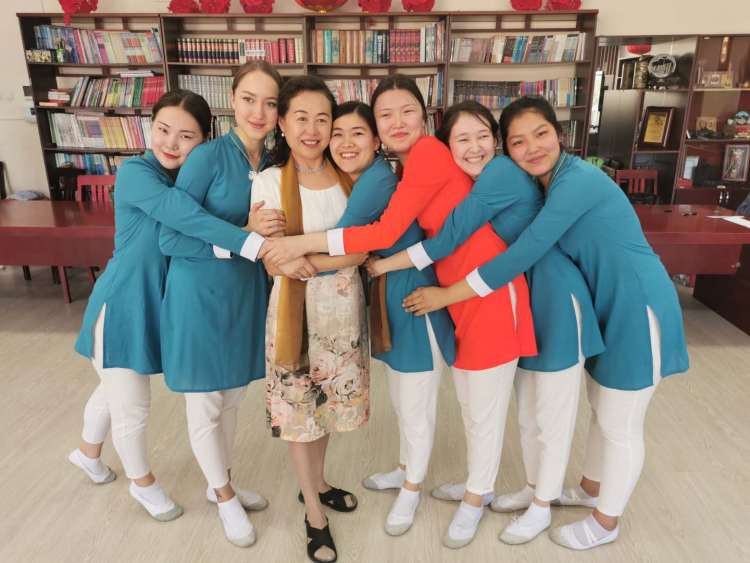 祁燕與舞劍學(xué)生合影。(新華社記者 王申 攝)