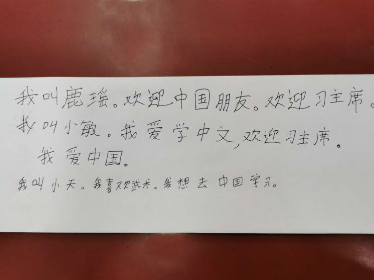 祁燕的學(xué)生們用中文寫下期待。(新華社記者 王申 攝)