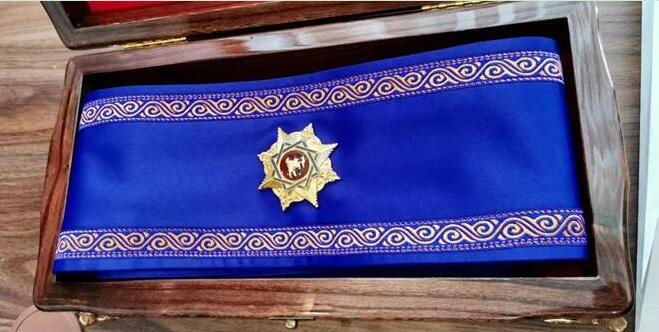 這就是授予習(xí)近平主席的勛章?!艾敿{斯”勛章是吉爾吉斯斯坦國(guó)家最高獎(jiǎng)?wù)拢杉獱柤顾固箍偨y(tǒng)授予,分三個(gè)等級(jí),一級(jí)為最高等級(jí)。新華社記者 丁林 攝