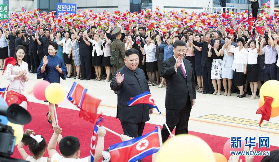 6月21日,中共中央總書記、國家主席習(xí)近平結(jié)束對朝鮮的國事訪問離開平壤回國。離開前,習(xí)近平和夫人彭麗媛出席朝鮮勞動黨委員長、國務(wù)委員會委員長金正恩和夫人李雪主在機場舉行的歡送儀式。新華社記者 黃敬文 攝