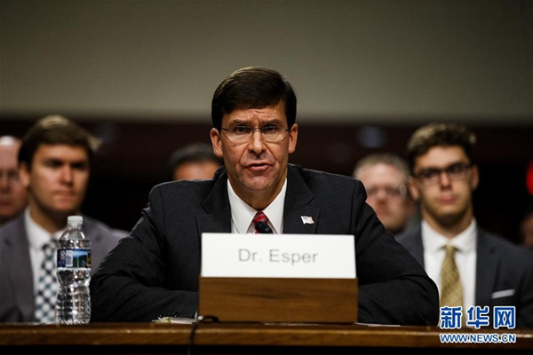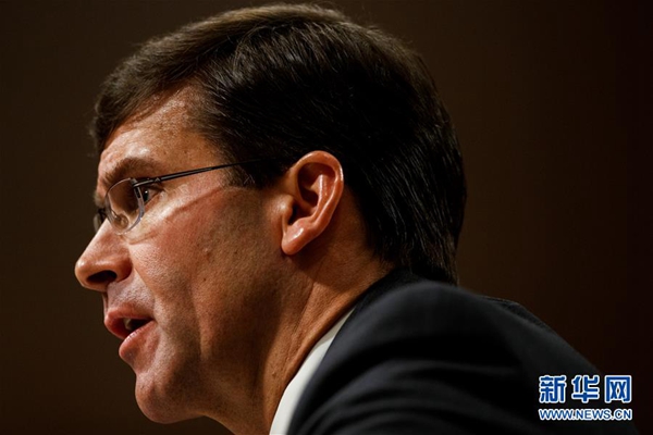 這是7月16日在美國華盛頓國會(huì)拍攝的馬克·埃斯珀參加參議院聽證會(huì)的資料照片。新華社發(fā)(沈霆 攝)