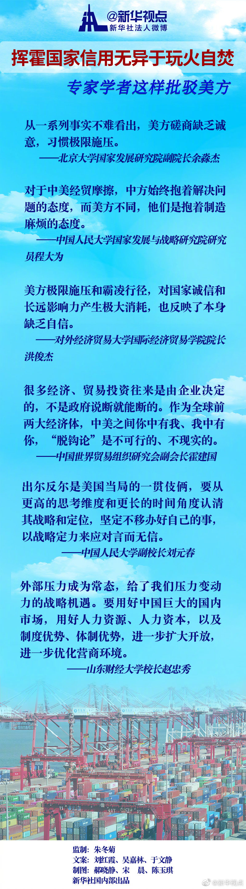 中國(guó)人民大學(xué)副校長(zhǎng)劉元春認(rèn)為,出爾反爾是美國(guó)當(dāng)局的一貫伎倆,要從更高的思考維度和更長(zhǎng)的時(shí)間角度認(rèn)清其戰(zhàn)略和定位,堅(jiān)定不移辦好自己的事,以戰(zhàn)略定力來(lái)應(yīng)對(duì)言而無(wú)信。