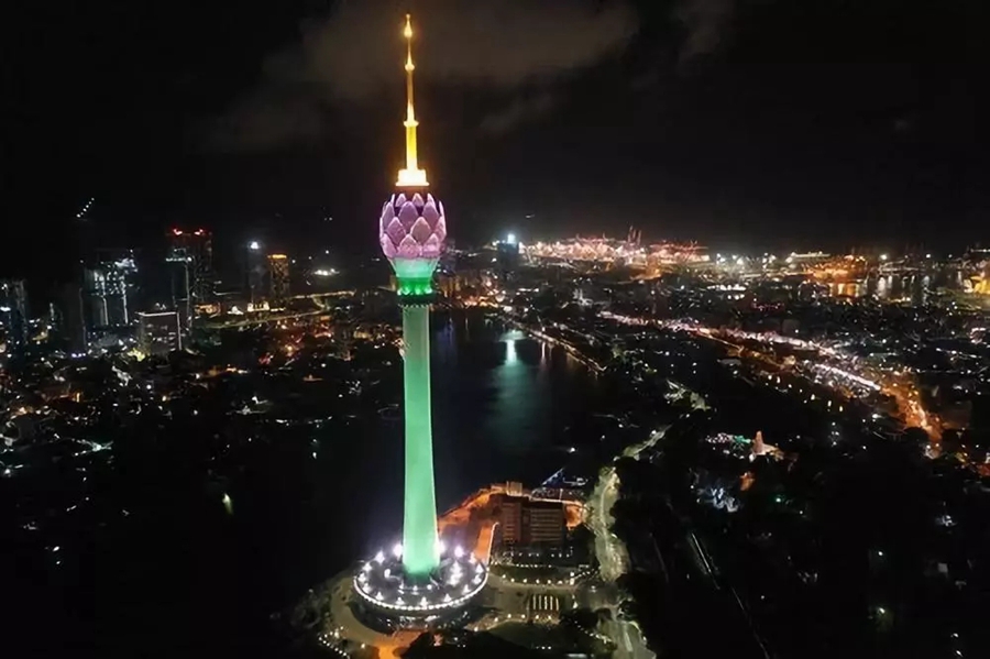 斯里蘭卡首都科倫坡地標(biāo)建筑蓮花電視塔9月16日晚舉行竣工慶典。科倫坡蓮花電視塔是中斯兩國在“一帶一路”建設(shè)中的重要合作項(xiàng)目。新華社發(fā)
