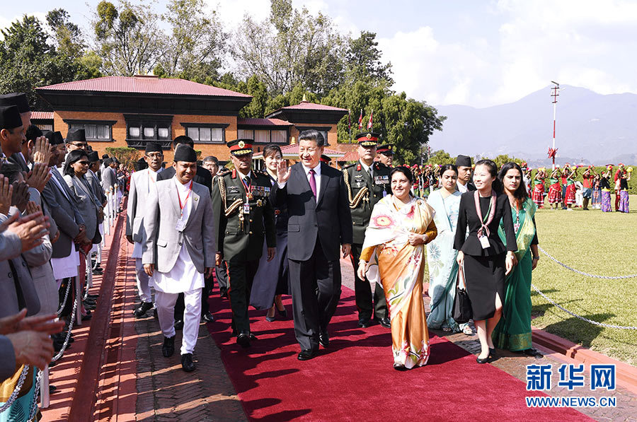 班達里在機場為習近平舉行隆重歡送儀式。尼泊爾副總統(tǒng)普恩、總理奧利、聯邦議會聯邦院主席蒂米爾西納、所有內閣成員、軍方高級將領參加。