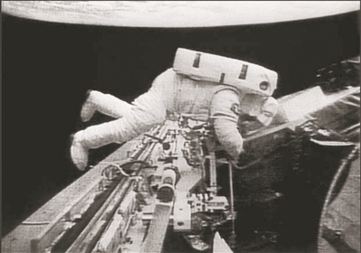 一系列準備工作妥當(dāng)后,他終于打開了外部艙門,進入了距離地球100英里的太空。此時,只有一條16英尺長的繩子,連結(jié)著他和太空艙。這是人類第一次在脫離飛船的宇宙中鳥瞰地球,太空的浩渺讓列昂諾夫為之驚嘆,那里的景色讓他覺得有“難以形容的美麗”。