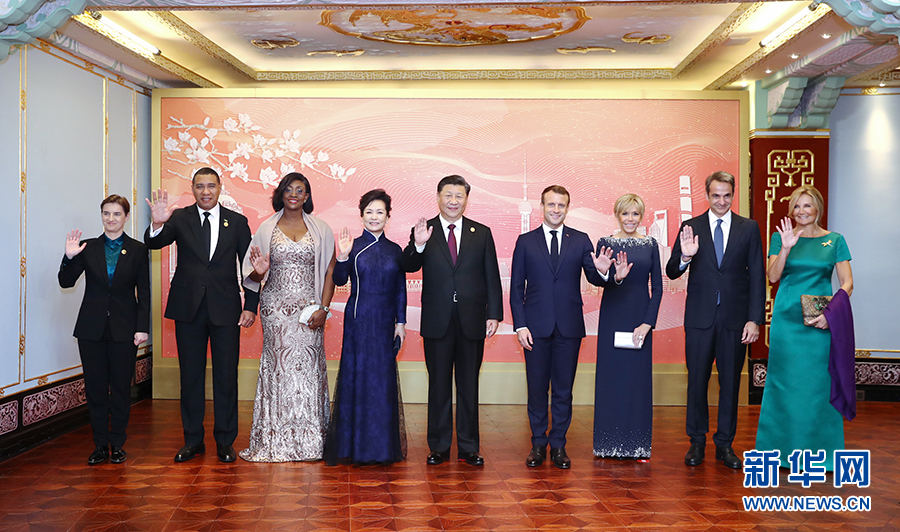 11月4日晚,國家主席習(xí)近平和夫人彭麗媛在上海和平飯店舉行宴會,歡迎出席第二屆中國國際進口博覽會的各國貴賓。這是宴會前,習(xí)近平和彭麗媛同法國總統(tǒng)馬克龍夫婦、牙買加總理霍爾尼斯夫婦、希臘總理米佐塔基斯夫婦、塞爾維亞總理布爾納比奇等外方貴賓合影留念。 新華社記者 鞠鵬 攝