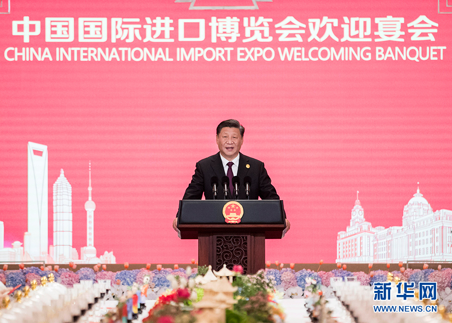11月4日晚,國家主席習(xí)近平和夫人彭麗媛在上海和平飯店舉行宴會,歡迎出席第二屆中國國際進口博覽會的各國貴賓。這是習(xí)近平發(fā)表致辭。 新華社記者 王曄 攝