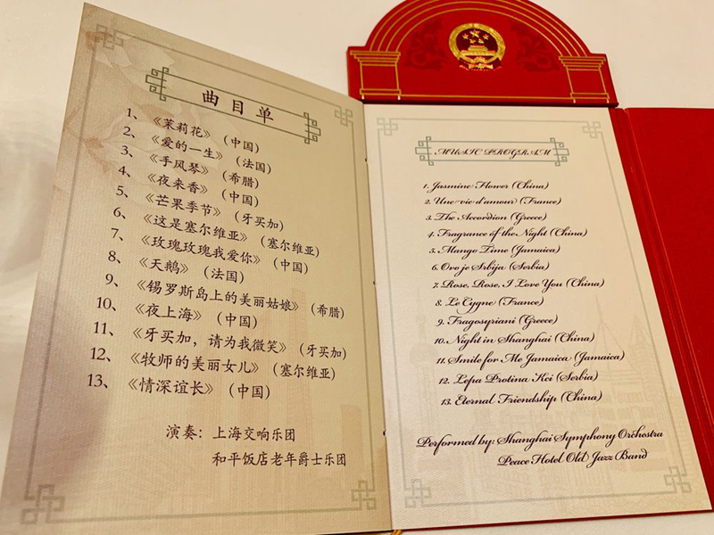 晚宴上,來自上海交響樂團(tuán)、和平飯店老年爵士樂團(tuán)的樂手們,演奏了中國、法國、希臘、牙買加、塞爾維亞的13首名曲,讓各國客人賓至如歸。