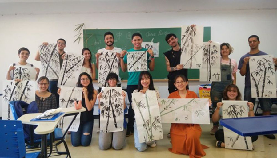 巴西學(xué)生在孔子學(xué)院體驗(yàn)中國(guó)文化。巴西有10所孔子學(xué)院,是擁有孔子學(xué)院數(shù)量最多的拉美國(guó)家。