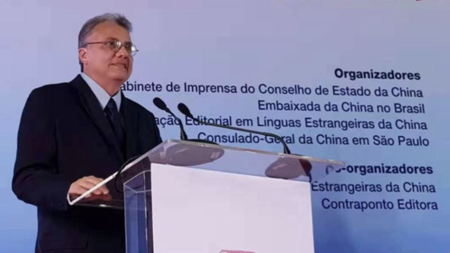 羅尼·林斯在圣保羅《習(xí)近平談治國(guó)理政》第一卷、第二卷葡文巴西版首發(fā)式上致辭。