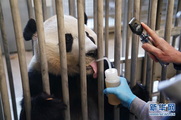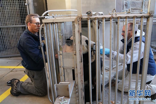 新華社華盛頓11月13日電(記者孫丁 熊茂伶)即將踏上回國(guó)旅程的雄性大熊貓“貝貝”13日在華盛頓美國(guó)國(guó)家動(dòng)物園接受臨行前最后一次體檢。動(dòng)物園首席獸醫(yī)唐·奈弗告訴新華社記者,“貝貝”身體很健康,處于適合旅行的狀態(tài)。