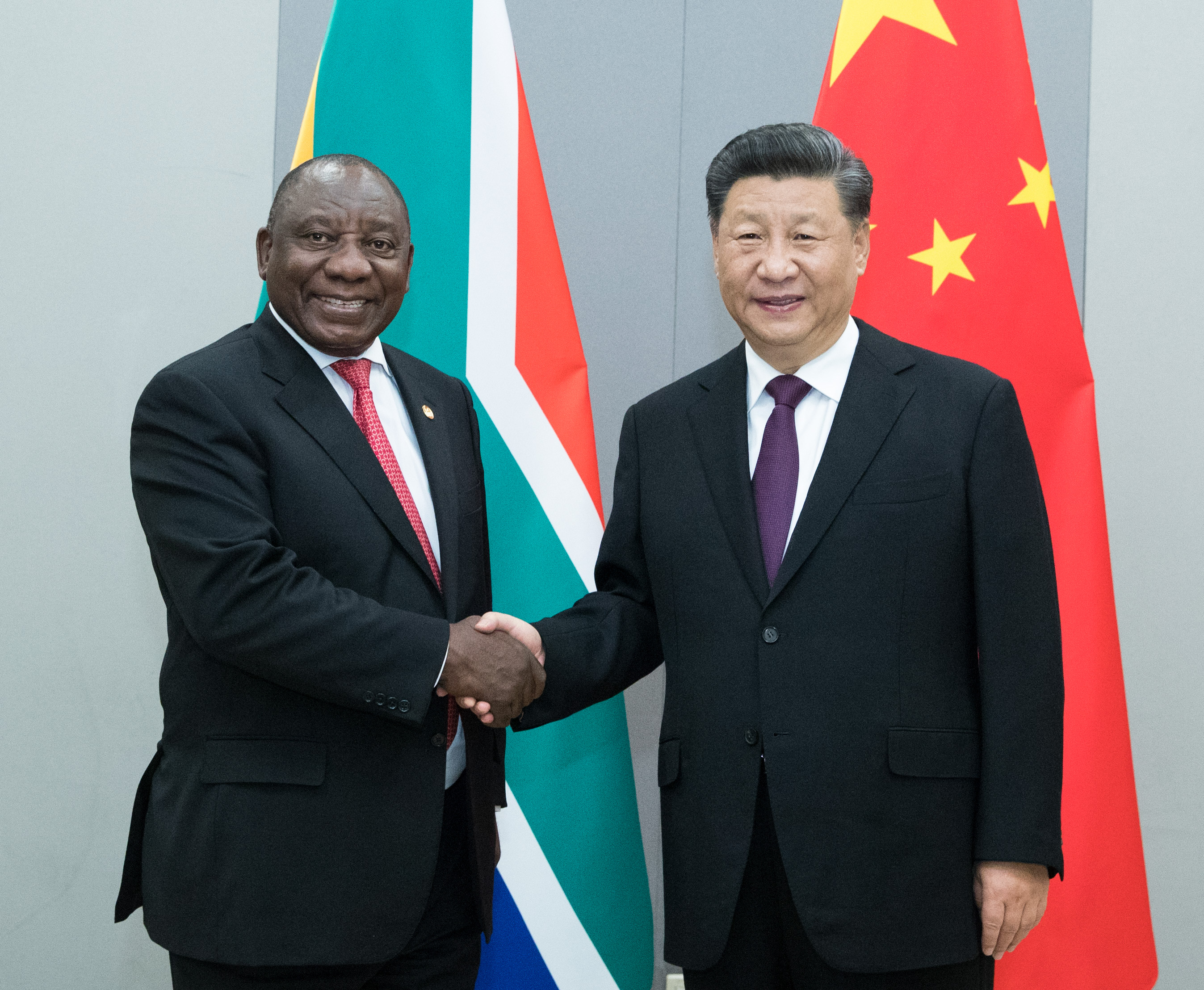 ▲當?shù)貢r間11月14日,國家主席習近平在巴西利亞會見南非總統(tǒng)拉馬福薩。新華社記者王曄攝