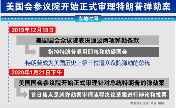 根據(jù)參議院多數(shù)黨(共和黨)領袖麥康奈爾當天正式提交的決議草案,彈劾案審理主要包括開案陳述、交叉提問、參議院就是否傳喚更多證人或檢視更多證據(jù)進行投票表決等階段。