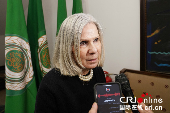 阿盟社會(huì)事務(wù)助理秘書(shū)長(zhǎng)海法·阿卜·加扎拉接受記者采訪