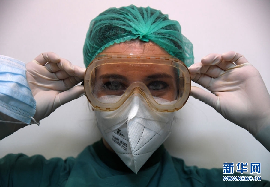 4月12日,在意大利首都羅馬,圣斯皮里托醫(yī)院的護士在進入新冠肺炎病區(qū)前穿戴防護設(shè)備。新華社發(fā)(阿爾貝托·林格利亞攝)