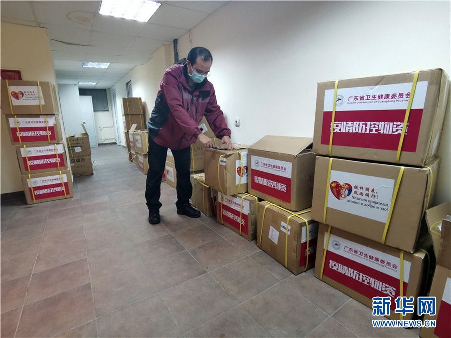 3月28日,在塞爾維亞首都貝爾格萊德的中國赴塞爾維亞抗疫醫(yī)療專家組駐地,專家組成員龍其穗整理清點物資,為第二天使用的防護用具做好準(zhǔn)備。這是他每晚必做的工作。新華社發(fā)(專家組供圖)