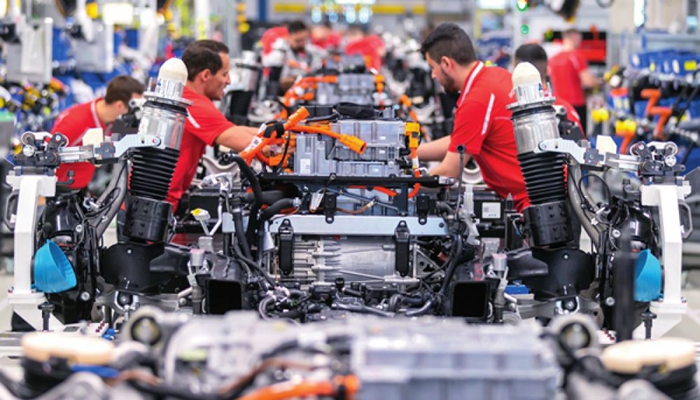 3月5日,工人在位于德國斯圖加特的保時捷汽車工廠生產(chǎn)線上工作