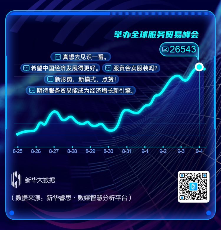 9月4日,2020年中國國際服務貿易交易會(簡稱服貿會)在北京開幕。作為疫情發(fā)生以來我國在線下舉辦的第一場重大國際經貿活動,服貿會受到輿論廣泛關注,話題信息量不斷增加,網絡討論熱度更是高達96.57,位居話題熱度榜首。不少網民表示“真想去見識一番”“新形勢、新模式,點贊!”“期待服務貿易能成為經濟增長新引擎”。但面對鋪天蓋地的服貿會相關信息,也有部分網民表示“疑惑”,“服貿會賣服裝嗎?”“服貿會上都展出什么服務呢?”……