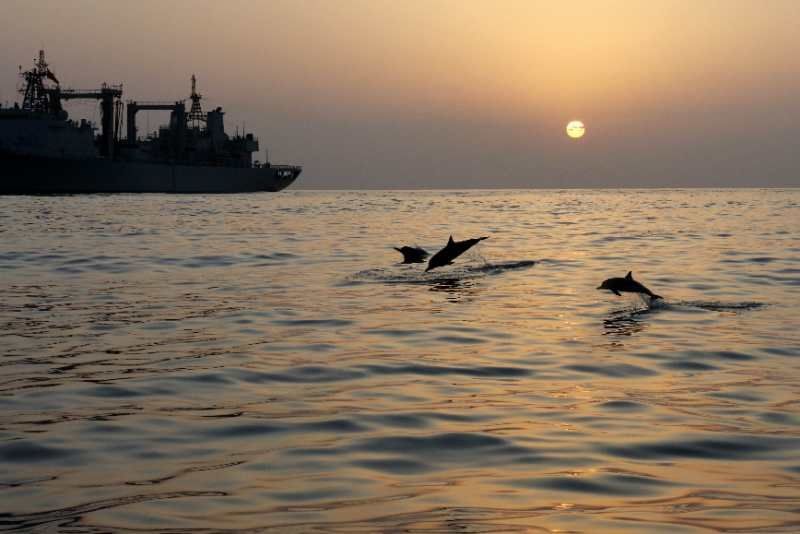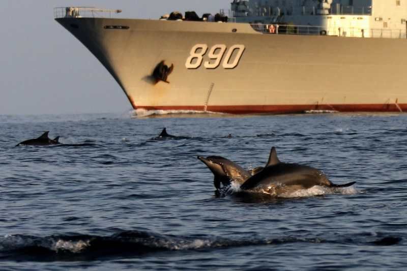 中國海軍赴亞丁灣索馬里海域護(hù)航編隊始終秉持海洋命運共同體理念,堅持人與大海和諧相處,注重生態(tài)環(huán)境保護(hù),贏得大自然積極回報,經(jīng)常出現(xiàn)編隊艦艇航行時有成群海豚伴航、待機集結(jié)時有各類魚群相伴的和諧場景。