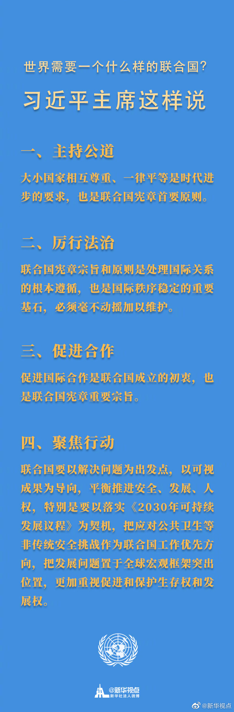 世界需要一個什么樣的聯(lián)合國?在后疫情時代,聯(lián)合國應(yīng)該如何發(fā)揮作用?習近平主席在聯(lián)合國成立75周年紀念峰會上這樣說