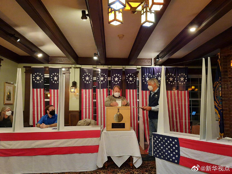 美國東部時間3日凌晨,美國東北部新罕布什爾州部分選民率先赴投票站投票,2020年美國大選選舉日投票正式開始。
