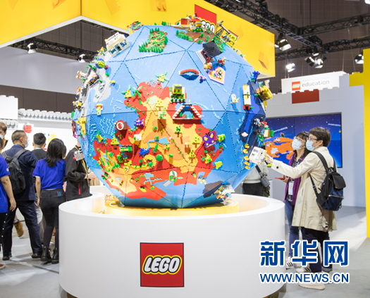 樂(lè)高玩具拼成的“地球”在樂(lè)高展區(qū)特別引人注目。新華網(wǎng) 發(fā)