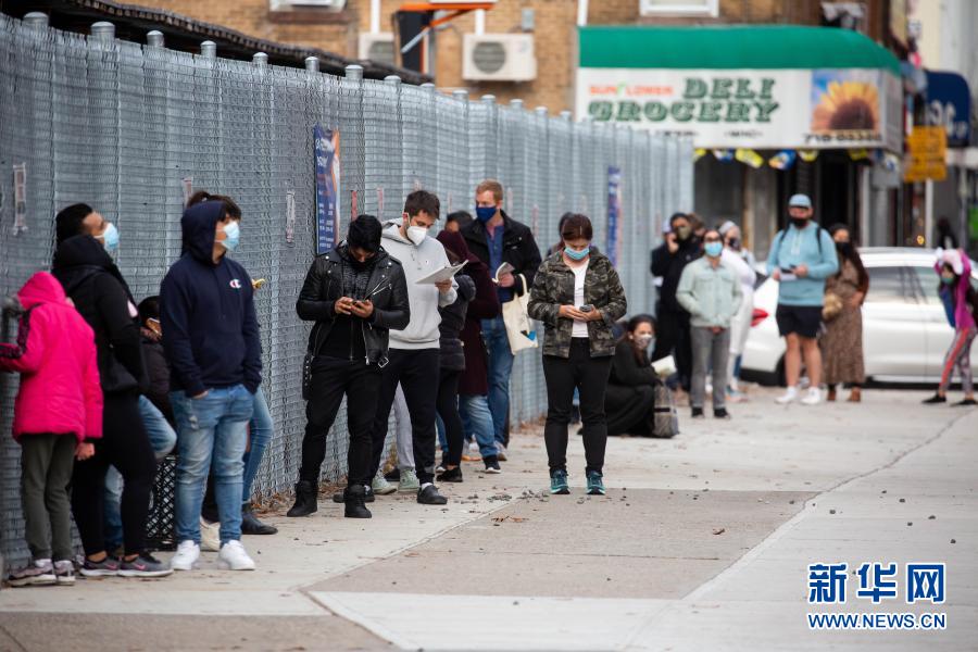 11月21日,人們在美國紐約排隊(duì)等待接受新冠病毒檢測。美國約翰斯·霍普金斯大學(xué)21日發(fā)布的新冠疫情最新統(tǒng)計(jì)數(shù)據(jù)顯示,美國累計(jì)確診病例超過1200萬例。新華社發(fā)(郭克攝)