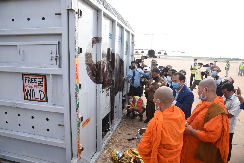 經(jīng)歷7小時飛行后,“卡萬”抵達(dá)柬埔寨東北部城市暹粒。然后它將經(jīng)歷數(shù)小時卡車運(yùn)輸?shù)诌_(dá)保護(hù)區(qū)——那里有80多頭象。