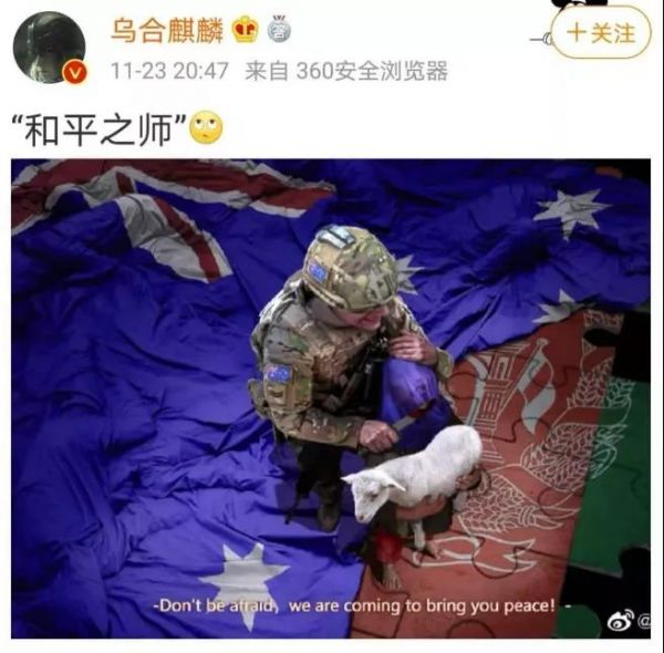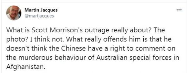 “莫里森的憤怒到底是什么?‘照片’?我想不是。真正令他惱怒的是,他認(rèn)為中國人無權(quán)對澳大利亞特種部隊(duì)在阿富汗的謀殺行為發(fā)表評論?!?/font>