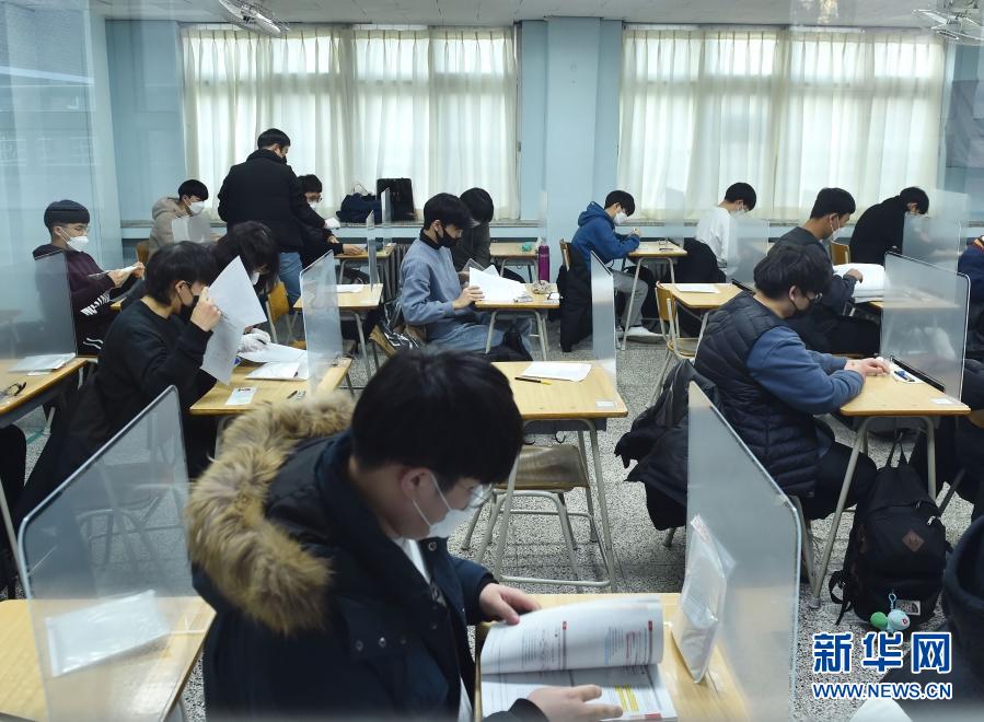12月3日,在韓國(guó)京畿道城南市,考生們準(zhǔn)備參加考試。新華社發(fā)(李相浩 攝)