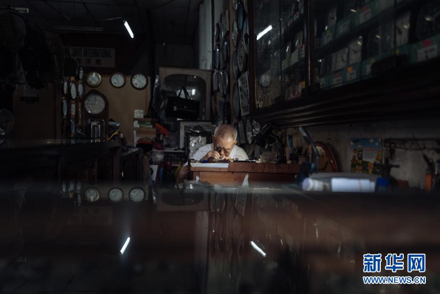 12月5日,在馬來(lái)西亞雪蘭莪州巴生的郁昌表行,韋華在維修手表。新華社記者 朱煒 攝