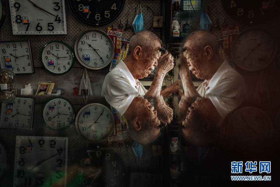 12月5日,在馬來(lái)西亞雪蘭莪州巴生的郁昌表行,韋華在維修手表。新華社記者 朱煒 攝