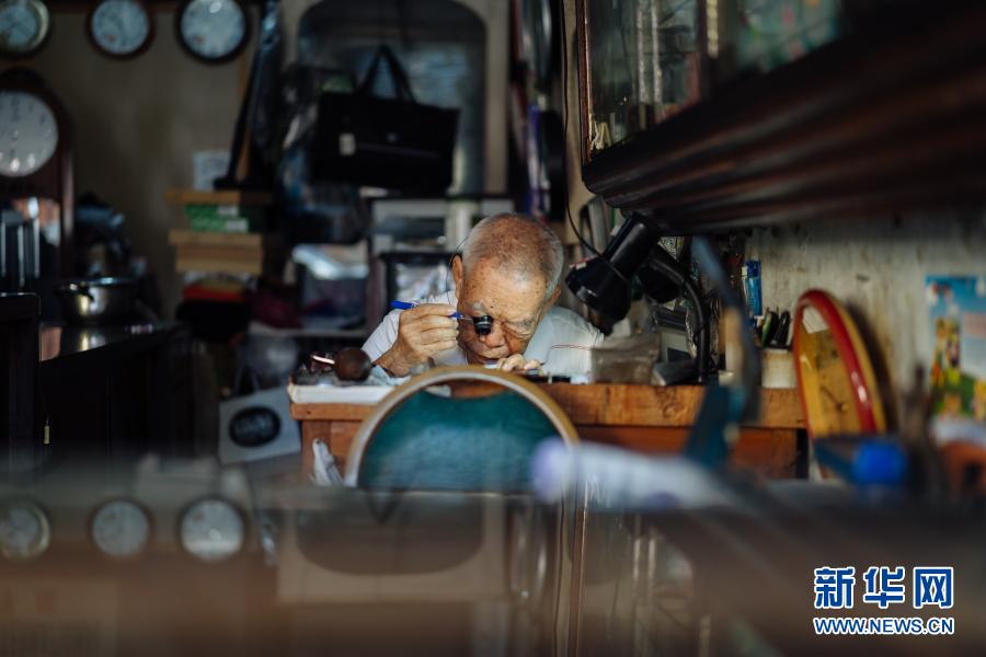 12月5日,在馬來西亞雪蘭莪州巴生的郁昌表行,韋華在維修手表。新華社記者 朱煒 攝